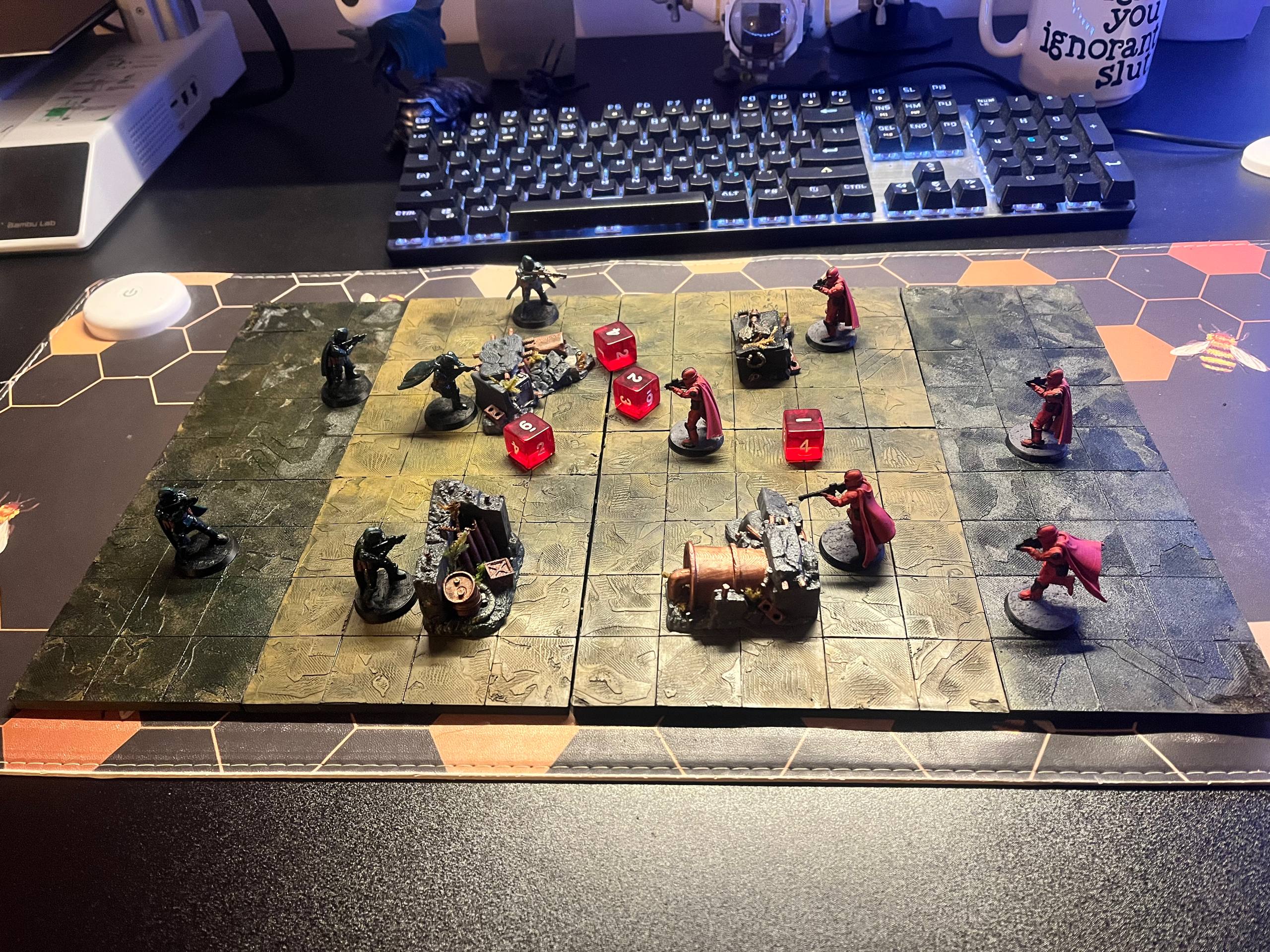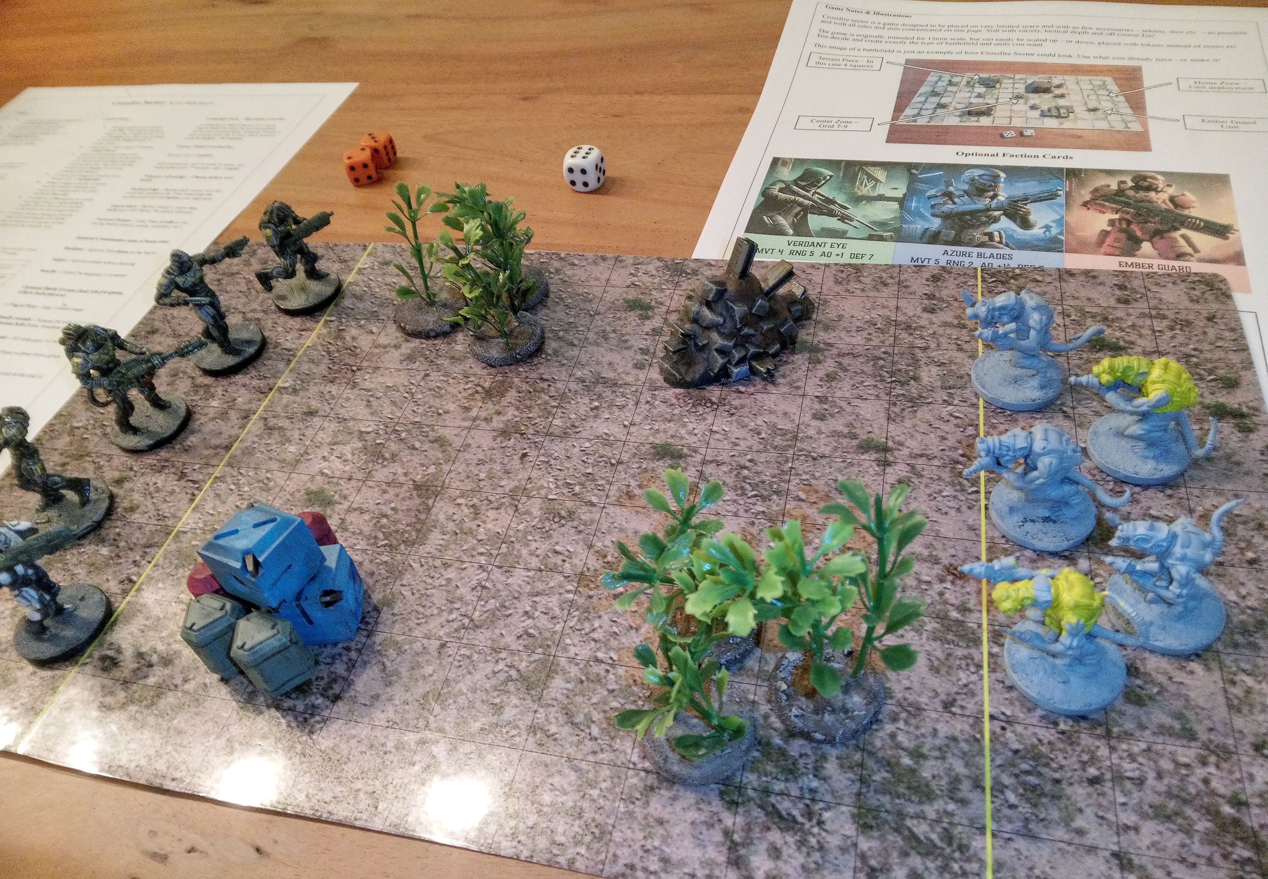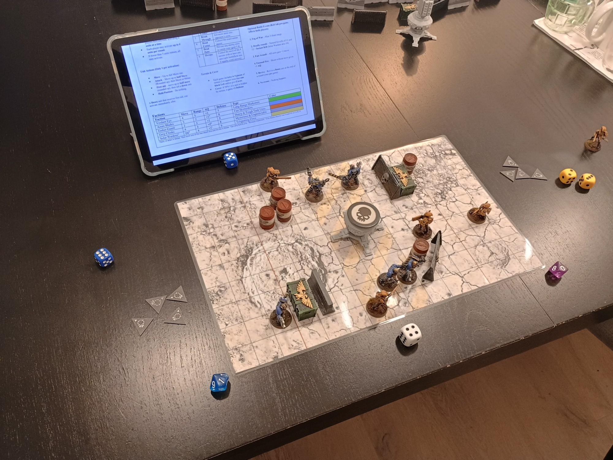 Other from that, though, I love how zippy it is to throw down and play. I've been using different dice from BaronofDice for factions and terrain XD it's been good fun, though I feel a couple of the factions are a bit weak, though that's likely my style more than anything.